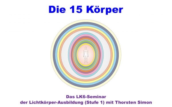 In seinem Seminar „Die 15 Körper“ stellt der Lichtkörper-Lehrer Thorsten Simon sein revolutionäres 15-Körper-System vor. Dieses 15-Körper-System schließt diverse Körper-Lücken, die in den bisherigen Körper- und Aura-Modellen üblicherweise zu finden sind. Und korrigiert viele bisherige Missverständnisse und Fehler. Dieses neue System erlaubt daher eine viel effizientere energetische Klärungs-, Heil- und Lichtkörperarbeit als mit den bisher üblicherweise verwendeten vereinfachten und lückenhaften Körper-Modellen. Es ist ein Meilenstein seiner spirituellen Forschungen und basiert auf seiner direkten Wahrnehmung und langjährigen Erfahrung zu den einzelnen Körpern. Dieses sehr spezielle und einzigartige Wissen gibt er in seinem 15-Körper-Seminar weiter. Vertiefungen dazu folgen dann in späteren Seminaren, wo mit bestimmten Elementen und Energiesystemen der 15 Körper bewusst gearbeitet wird.